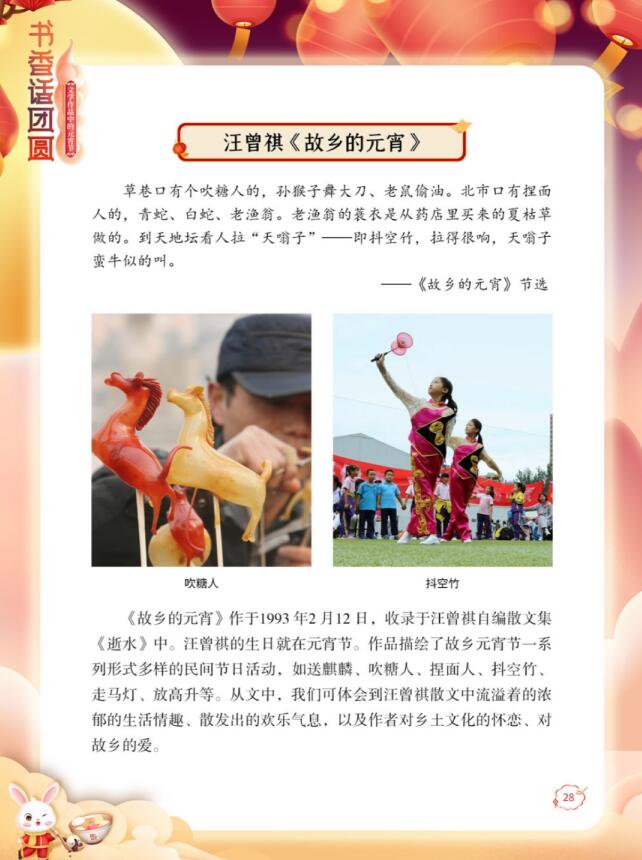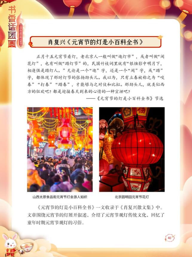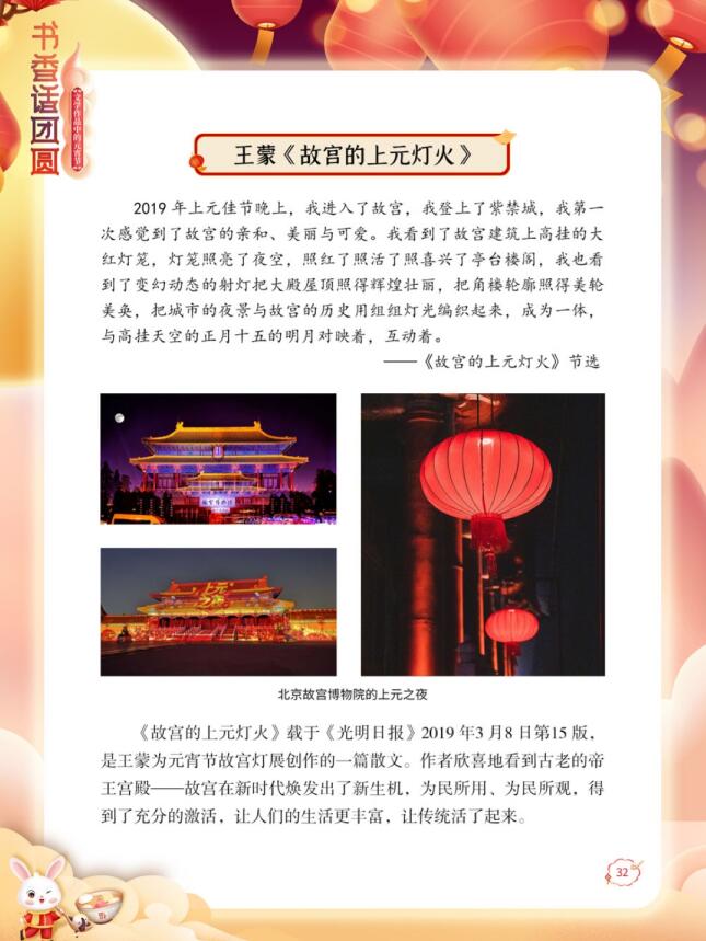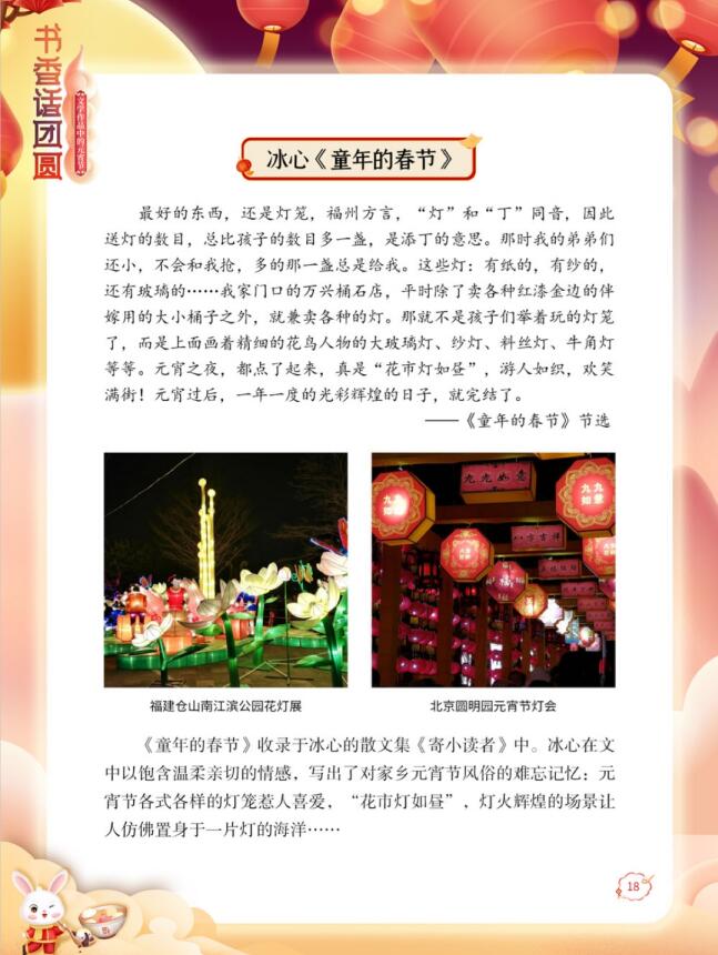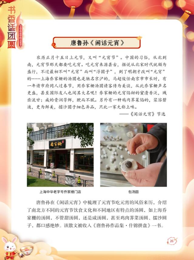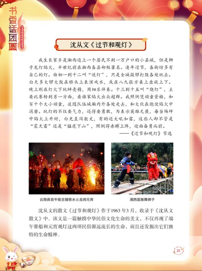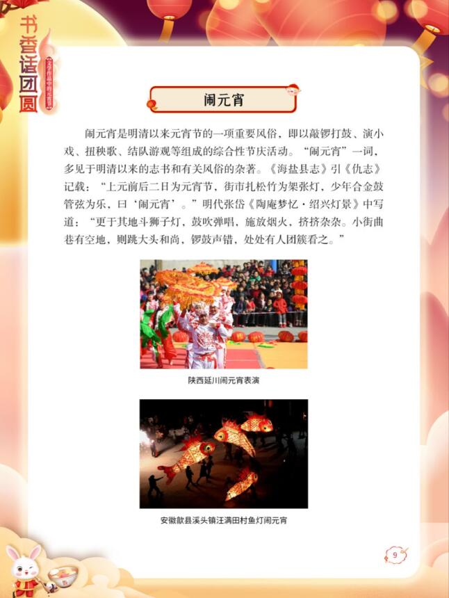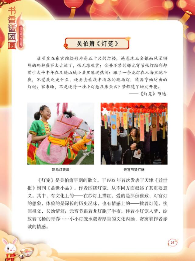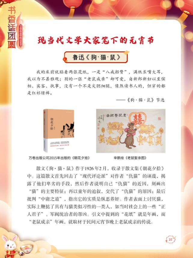 1 红红火火的元宵节,是中华大地土生土长的文化因子,它和一副副喜气洋洋的春联、一声声响彻年头年尾的爆竹、一篇篇文辞优美的诗词歌赋,共同构成了饶有雅趣的特色中国年。 唯有书香能致远。元宵节在时代变迁中被赋予了丰厚的文化意义,有着各种各样的节日民俗。这些民俗被文人以笔墨记录下来,推动了节俗文化的传承。同时,文人借助传统文化积淀投射出的意蕴,进行了新的创作,服务于作品情节的推进、情绪的渲染、感情的抒发,在很大程度上充实了元宵节的内涵。 值此元宵节到来之际,让我们品尝着热气腾腾的元宵,在年节独有的氛围里,在文学大家的笔墨书香之中寻找那份热闹与喜庆,体味中国传统节俗文化的博大精深。 2 主办单位:江华瑶族自治县图书馆 协办单位:神州共享(北京)文化传媒有限公司 展览内容