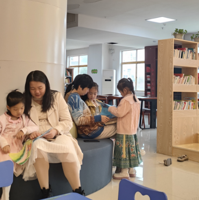 图书馆里,小读者、大读者们井然有序地还书、借书。有的小朋友独自进入少儿阅读池,拿着自己喜爱的书籍,沉浸在书籍的故事里,一看就是半天;有的小朋友在家长的指导下,感受阅读带来的乐趣。在家长的陪伴下,孩子们徜徉在书海中,度过了一个充实、别样的假日。