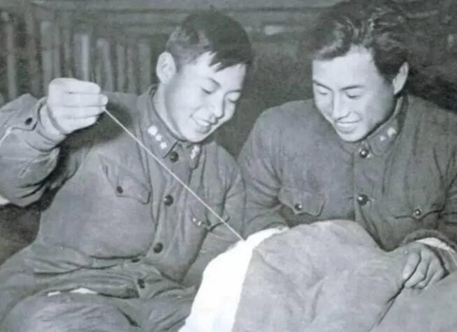 雷锋帮战友缝补被子。张峻摄于1961年1月