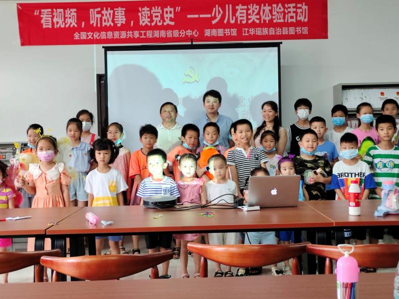 为庆祝建党100周年,增强少儿的爱党爱国情怀,让党的百年历史点亮孩子们的梦想,让红色精神永远流传,6月30日上午,在江华瑶族自治县图书馆二楼综合阅览室开展了由全国文化信息资源共享工程湖南省级分中心、湖南图书馆、江华瑶族自治县图书馆主办的“看视频,听故事,读党史”少儿有奖体验活动,现场约50余位少儿读者以及部分家长参加了活动,活动围绕“看视频、有奖问答、绘画”三个环节展开。