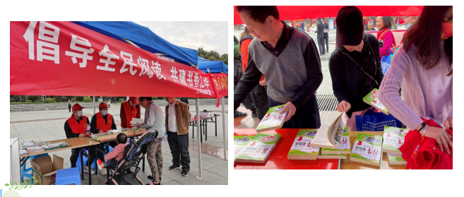 倡导全民阅读,共建书香江华。学雷锋志愿者服务活动开始前,由县图书馆馆长带队,将一本本精美的图书在展台摆放整齐,等待群众来阅读。