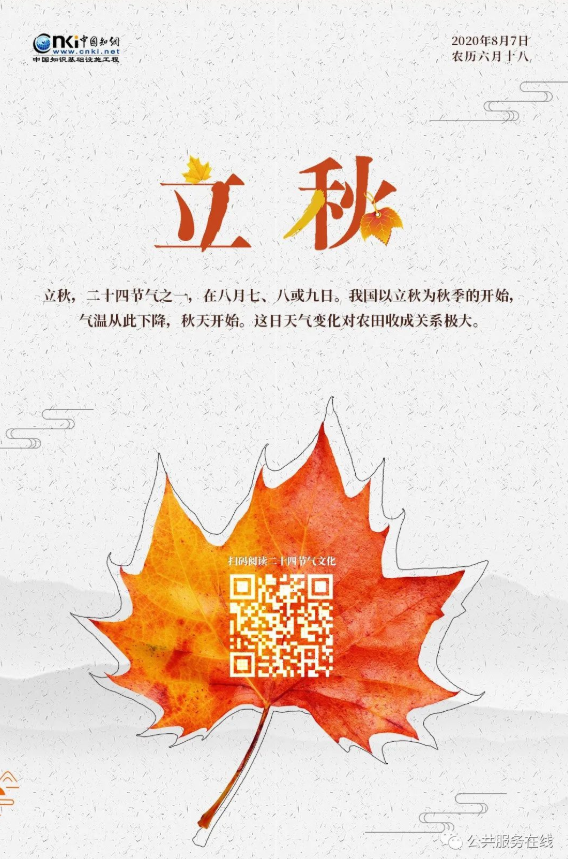 有谚语说“立秋之日凉风至”, 即立秋是凉爽季节的开始。但由于我国地域辽阔幅员广大,纬度、海拔高度不同,实际上是不可能在立秋这一天同时进入凉爽的秋季的。从其气候特点看,立秋由于盛夏余热未消,秋阳肆虐,特别是在立秋前后,很多地区仍处于炎热之中,故素有“秋老虎”之称。